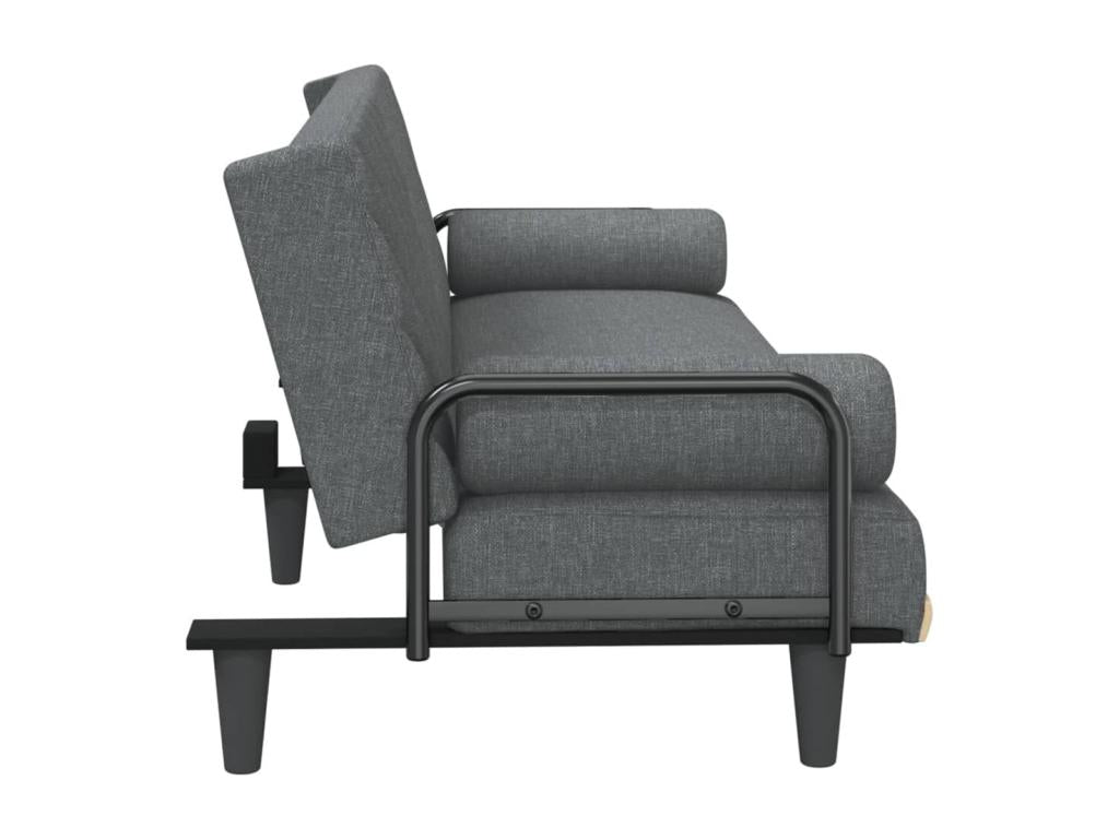 Combination of gray fabric and solid wood base delivers a cozy and earthy vibe