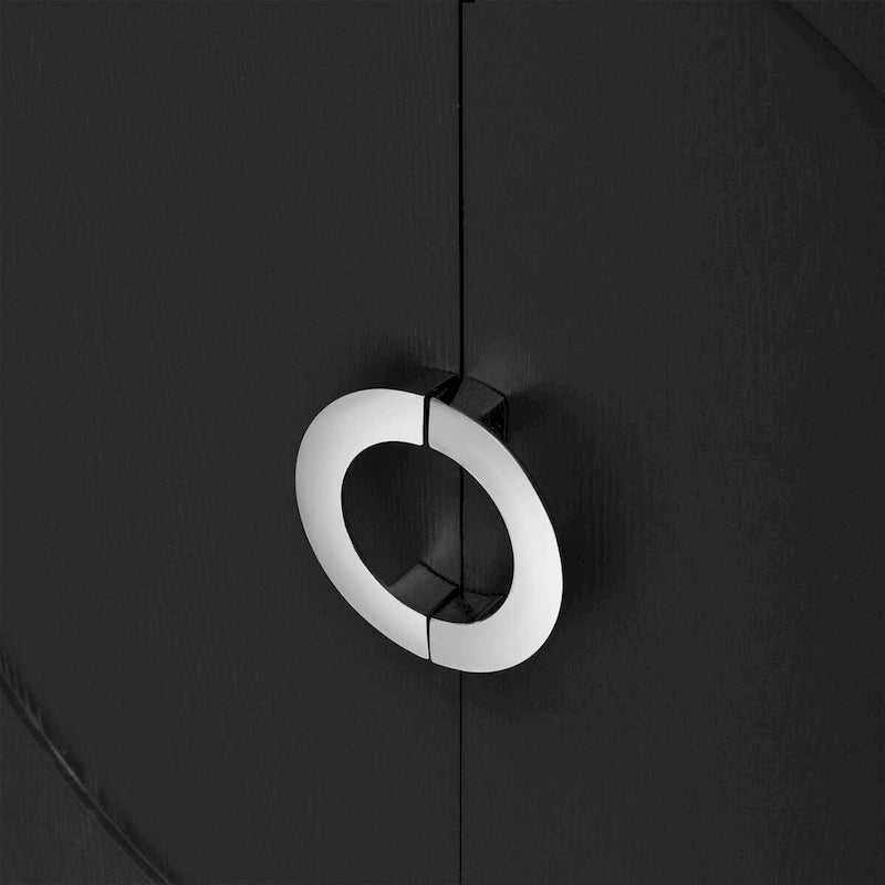 The wood striped finish and black/white/navy cabinet combine aesthetics and practicality with clean, neat lines that meet the aesthetic standards of every era. The surface fraxinus mandshurica veneer increases the solid wood grain texture. Circular door and handles design create a sense of symmetry and layering beauty which can enhance the overall sense of balance.