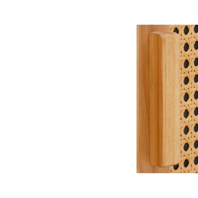 Versatility is the master key to home living with the Ren Home Talo Sideboard. Our country cottage-styled furniture piece is not just a modern storage unit but a space-saving dcor must-have. Featuring a sleek sled base and three striking doors with elaborate rattan weave fronts, this sideboard is a true showstopper. The two divided cabinets, with one larger and one smaller section, each equipped with two shelves, provide sufficient storage space for all your essentials. From tableware and bedding to books and decorative accessories, everything will finally find its rightful place. Whether you place it in your living room, bedroom, dining room, entryway, hallway, or home office, it is guaranteed to catch everyone's attention and give you vast multifunctional usage options. Crafted from naturally grained solid pine wood, the sideboard's breezy weaving promotes ventilation to keep musty smells and humidity away from closed storage areas. Let the Talo be a tidy titan.