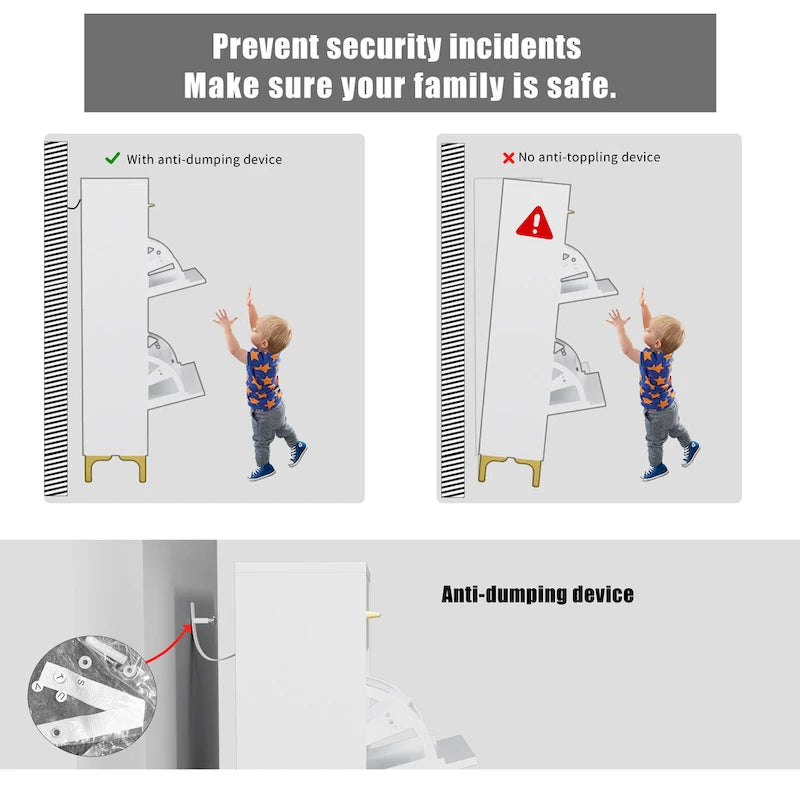 The space is large enough, the top of the shoe cabinet can be put out of the need for small items, the bottom of the shoe cabinet can be put slippers.